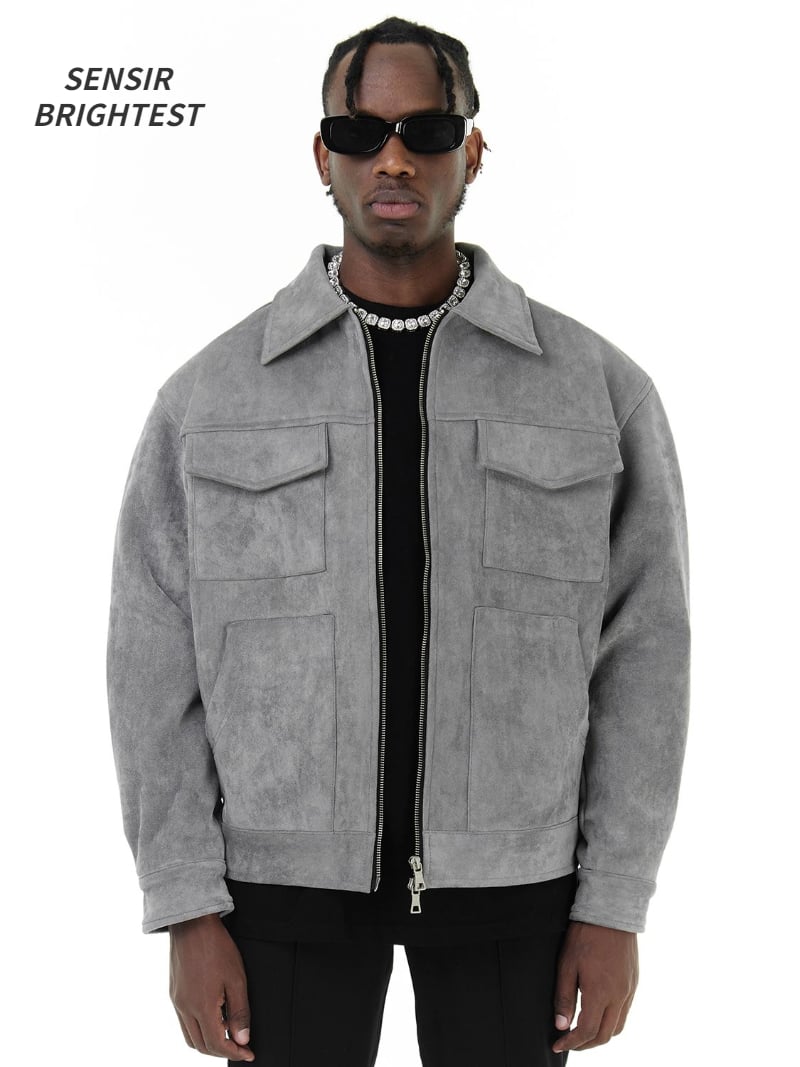 Autumn Jackets Oversize Casual Clothes High Street Pockets Laper Zipper Suede Thick Coat Mens Windbr