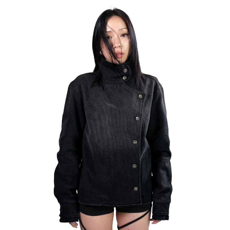 Y2k American Fencing Jacket Retro Washed Gradient Irregular Button Unisex Jacket Gothic Harajuku Str
