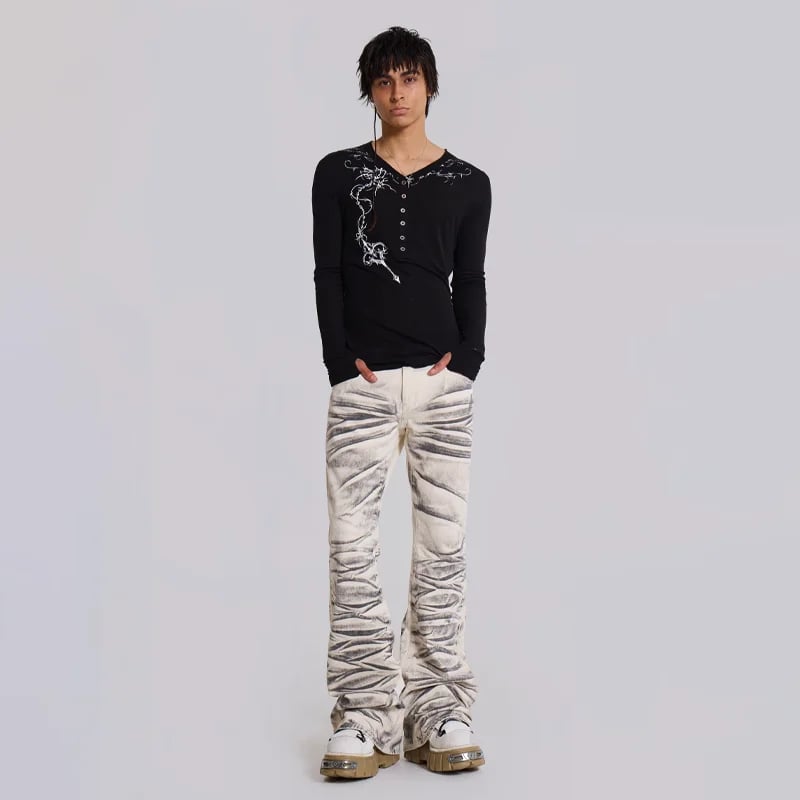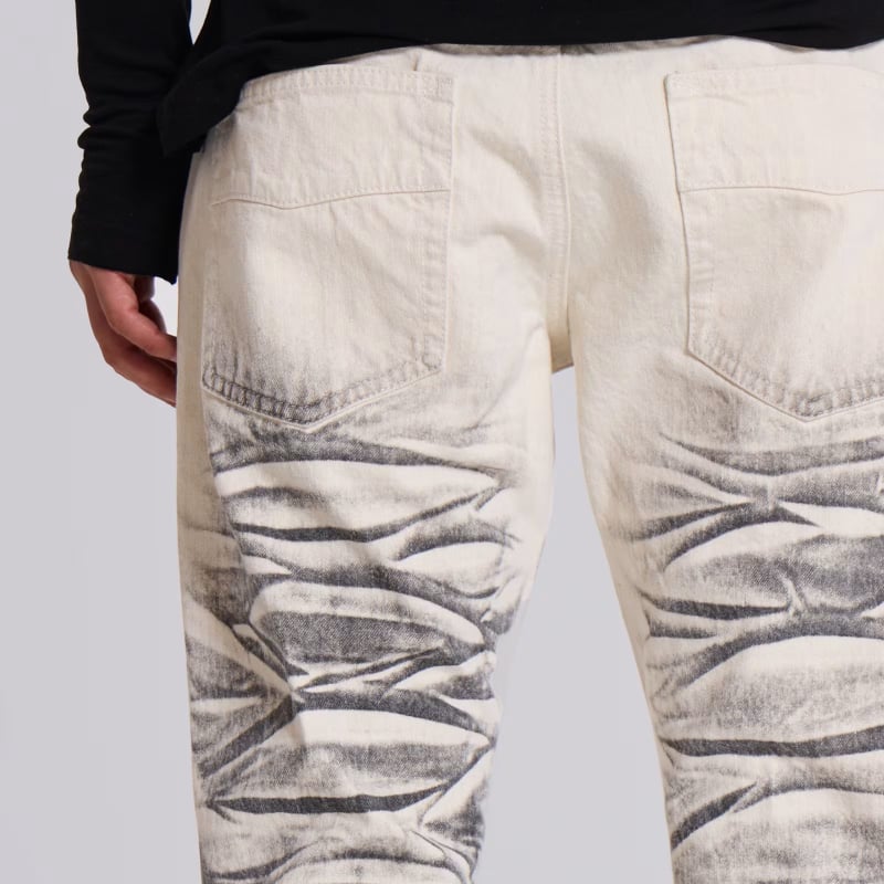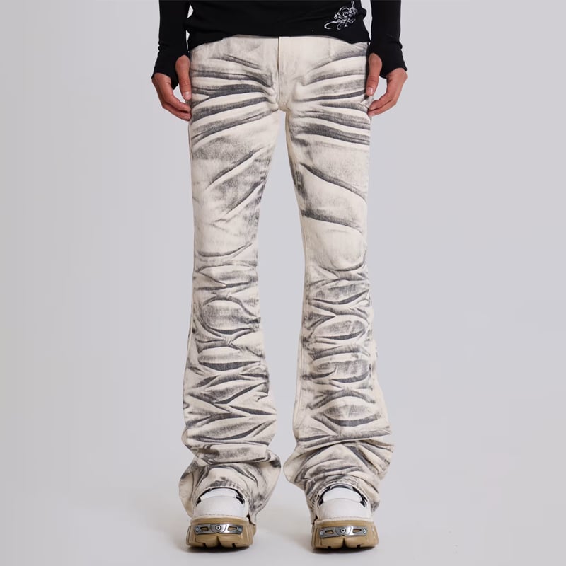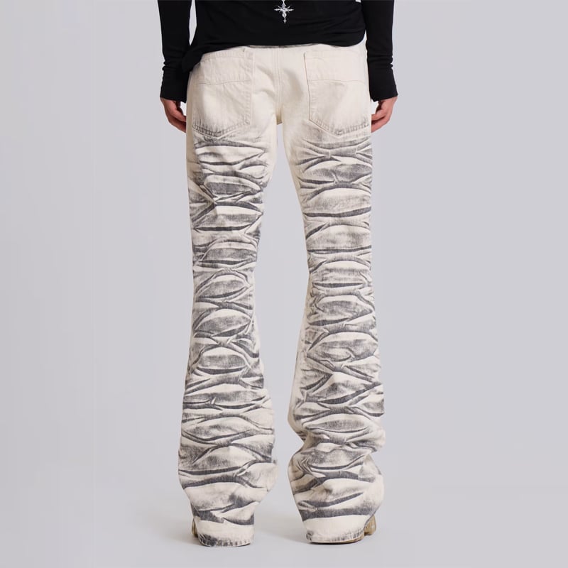 Y2K Arctic White Drift Flared Trumpet Jeans Retro Washed High Street Hip Hop Wide Leg Pants Gothic S